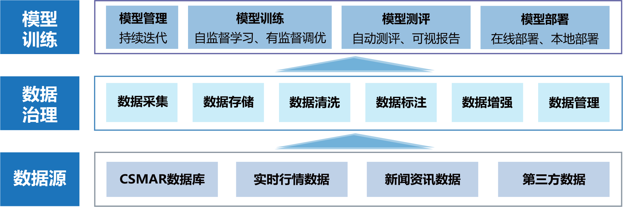 九州ku游官网金融大模型一体化服务平台给予从数据获取、数据处理、大模型训练、模型测评及部署的全链路服务,降低企业开发“业务场景AI应用”时,治理数据、构建专有大模型的技术和经验门槛。