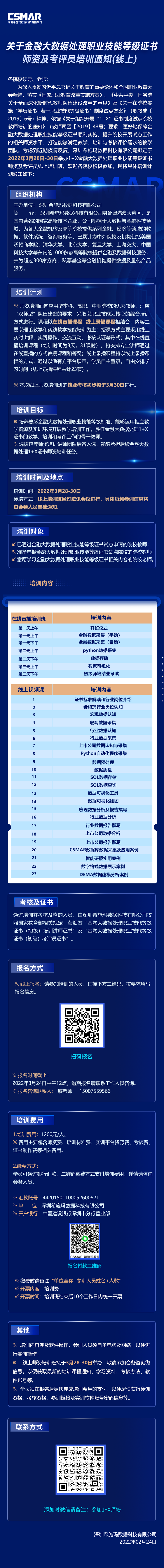 师资培训 | 关于金融大数据处理职业技能等级证书师资及考评员培训通知(线上)
